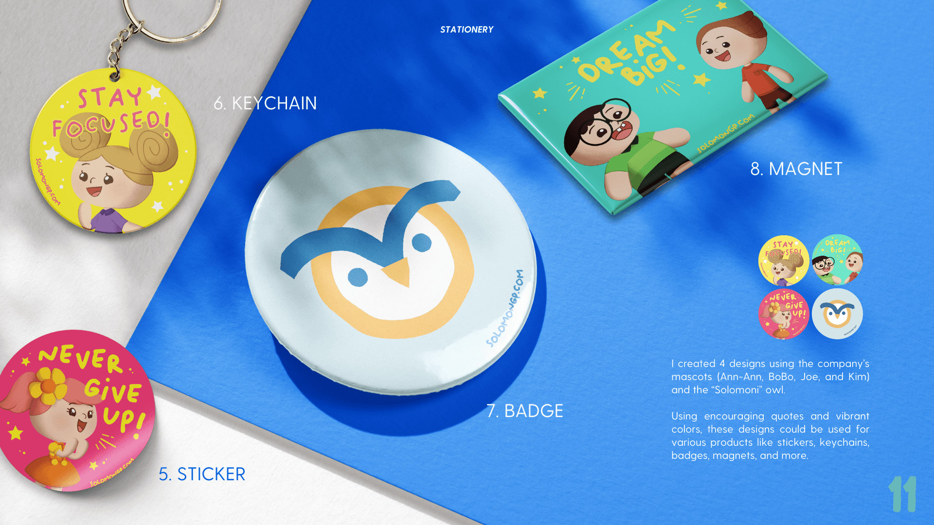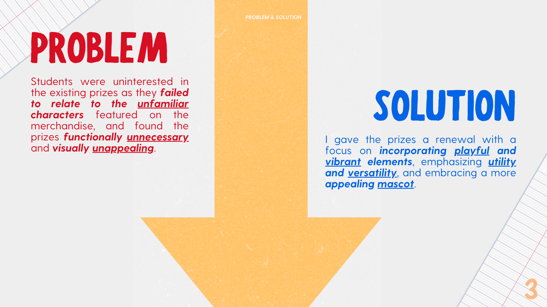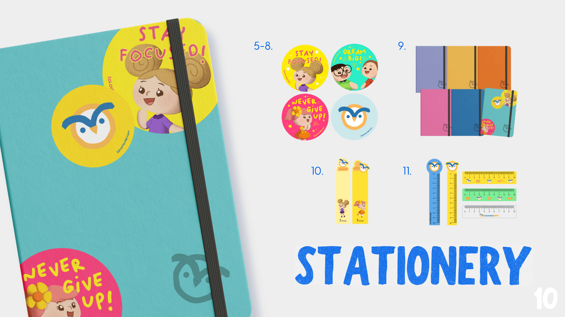 From speaking to students, I realized they were uninterested in the existing prizes as they didn't find them appealing or functional, and didn't connect with the mascots. WIth a focus on functionality, visual cohesion, and embracing a mascot more appealing to kids, I aimed to design stationery and accessories that children would want to win and use.
